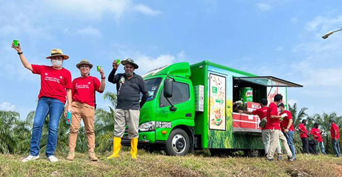 Volunteers enjoying cold cups of MILO from Nestlé’s signature Abang MILO trucks.