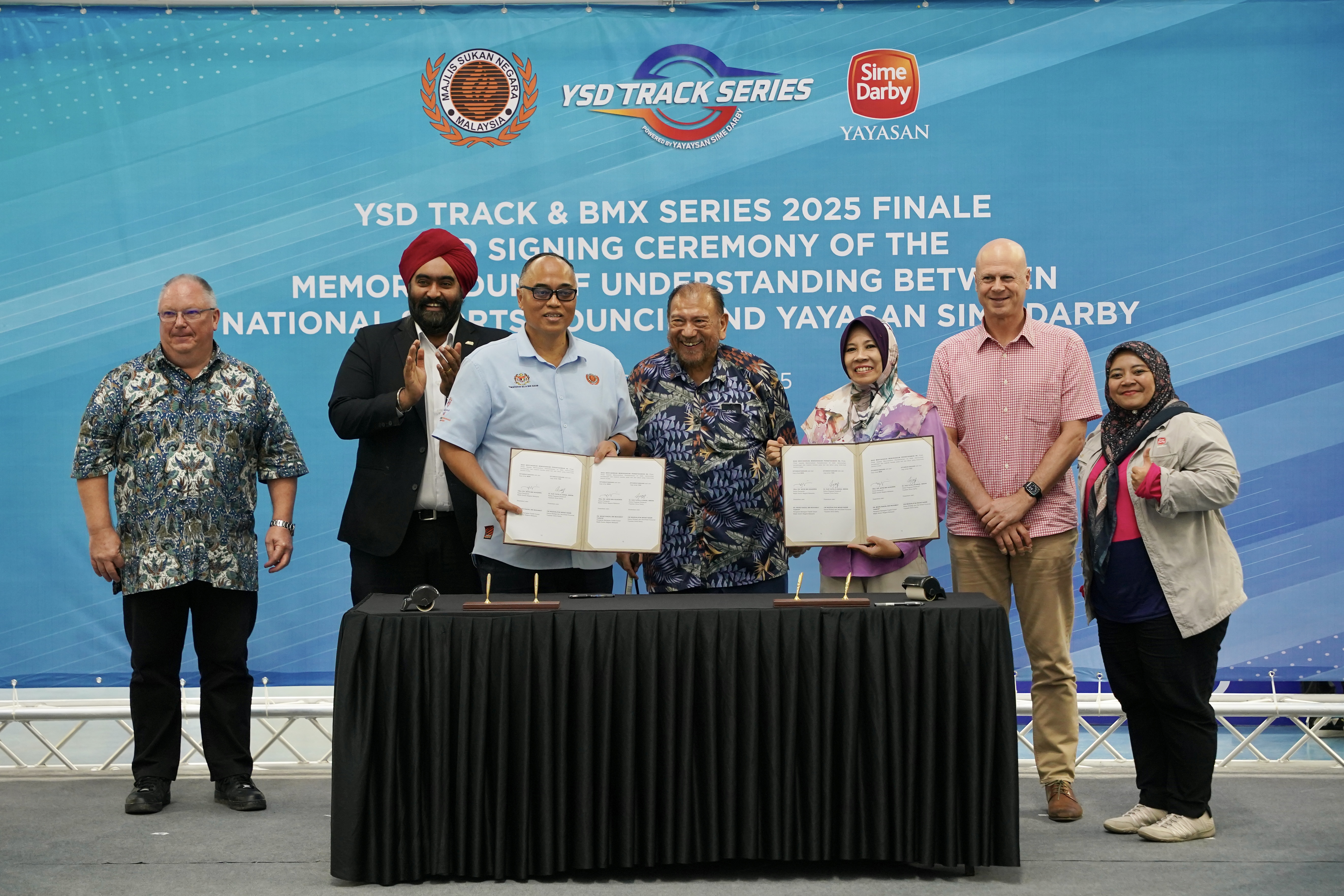 The announcement was made in conjunction with the Yayasan Sime Darby Track and BMX Series 2025 Finale at the National Velodrome in Nilai, which also witnessed the signing of a Memorandum of Understanding (MoU) between YSD and the National Sports Council (MSN). The MoU was signed by YSD Chief Executive Officer, Yang Berusaha Dr Hajah Yatela Zainal Abidin, and MSN Director-General, Yang Berusaha Encik Jefri bin Ngadirin, and witnessed by YSD Chairman, Yang Amat Mulia Tunku Tan Sri Imran Ibni Almarhum Tuanku Ja’afar. The MoU formalises a strategic collaboration between the private and public sectors to provide a safe and competitive race platform that supports more sustainable and holistic development of young cycling talent.